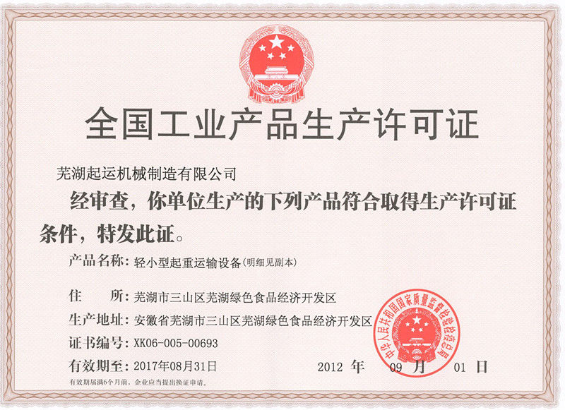 超越自己,才能贏得市場。“蕪起”不僅取得普通帶式輸送機(jī)的工業(yè)制造許可,正積極申領(lǐng)圓管帶式輸送機(jī)工業(yè)許可。。。。。